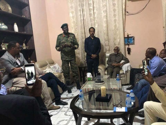 Jawari and Awad met with Brigadier Paul Lokech, who heads the Ugandan contingent of AMISOM and a handful of MPs in Villa Hargeisa for a meeting on security.