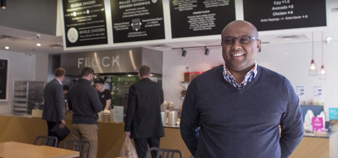 Mustafa's latest business venture is FLOCK rotisserie+greens in downtown Toronto. Flock is a health-conscious alternative to the fast-casual restaurants that have dominated the dining scene in recent years. He believes that consumers want healthier food and are willing to pay for it.