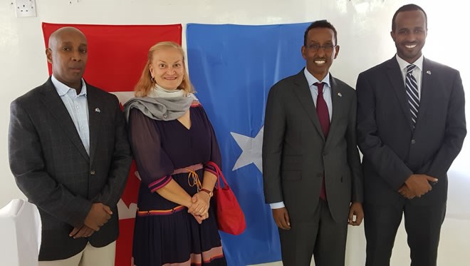 The Canadian Ambassador to Somalia, Sara Hradecky, hosted the event at Halane. Among the guest-list were prominent Somali-Canadians including three Somali cabinet ministers, Shukri Aden Mohamed, Senator in Somalia’s Upper House Chamber of Federal Parliament and civic leaders.