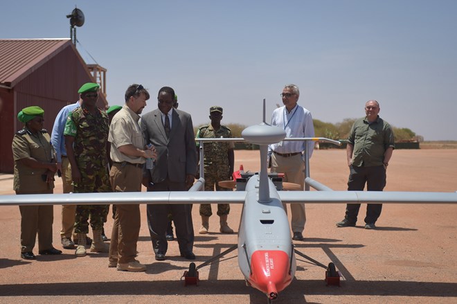 demonstration of an Unmanned Aervial Surveilance Vehicle by US officials in Baledogle, Somalia, on February 26, 2018. AMISOM Photo