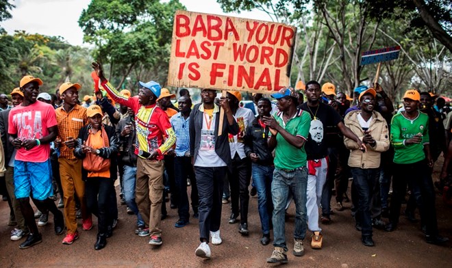 A supporter of National Super Alliance presidential candidate Raila Odinga hold a placard reading 'Baba (Odinga) your last word is final' during a political rally in Nairobi on October 25, 2017, on the eve of the presidential re-run election. Kenyan opposition chief leader urged his supporters to stay at home on October 25, 2017 as the country forges ahead with a disputed presidential poll that could threaten its stability. Luis Tato / AFP / Getty