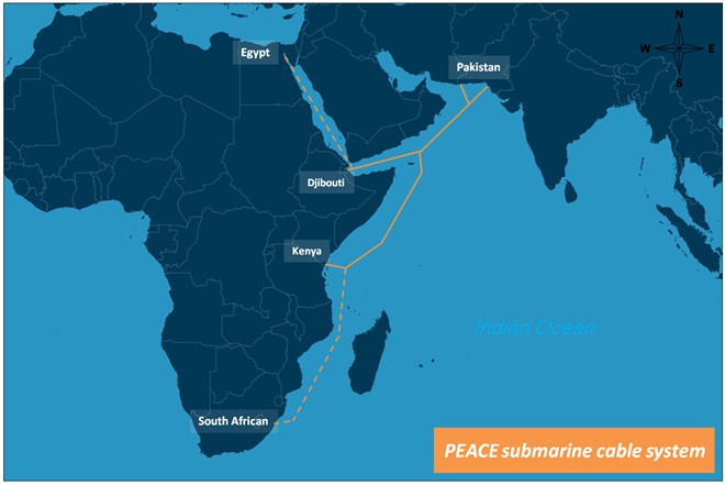 A statement from China’s Huawei Marine, reveals that HM was completing a ‘desktop study’ for a new subsea cable system, dubbed the ‘Peace Subsea Cable’ whose first phase is meant to connect South Africa, Kenya, Djibouti, Somalia and Pakistan (Gwadar and Karachi).