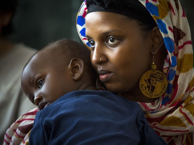The Ottawa Somali Community host their second annual Somali Cultural Festival Day at City Hall Saturday July 28, 2018. Fathiya Warsame snuggles with her son 11-month-old Jibriel Ali during the speeches Saturday afternoon. Ashley Fraser / Postmedia