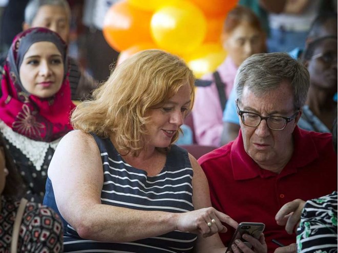 Jim Watson and MPP Lisa MacLeod chat before the speeches started