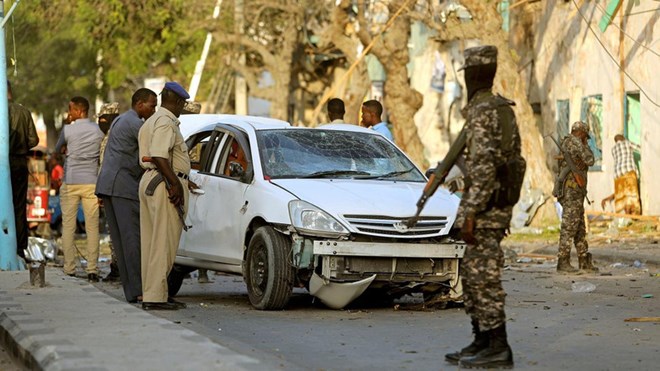 Somali security forces secure the scene of an explosion outside Weheliye Hotel in Maka al Mukarama street in Mogadishu, Somalia March 22, 2018. (Reuters)