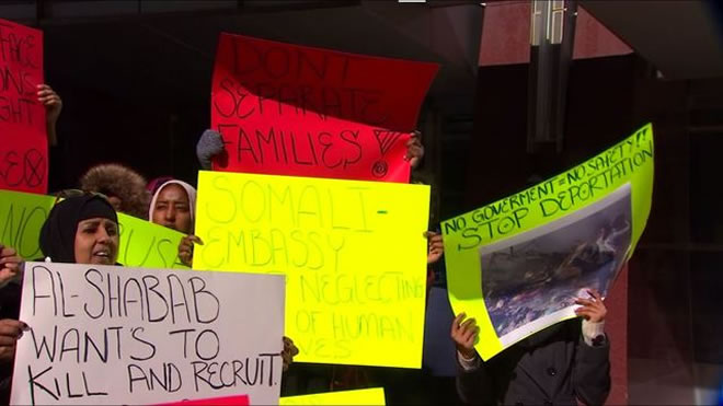 Wednesday, families from the Somali community held signs of relatives who are currently in custody. Others waved posters showing the deteriorating situation on the ground in Somalia.