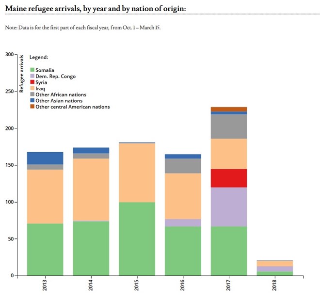 The AP analysis found that 21 refugees arrived in Maine between Oct. 1 and March 15, down from 229 during the same period a year ago.