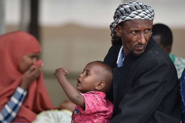 A Somali refugee on December 19, 2017 sits with his family among others