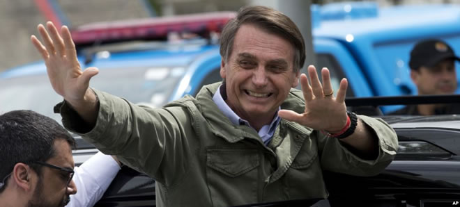 Bolsonaro campaigned for change, describing himself as a law and order candidate who will give police more freedom to crack down on crime.But many Brazilians are disturbed by his professed admiration of the 1964-1985 military dictatorship, and for offensive comments about gays, blacks, and women. They fear a Bolsonaro government will trample on human rights, civil liberties, and free speech -- especially by leftists. Bolsonaro drew protests after claiming a former dictatorship's main mistake was not killing more people, and that if elected, he would shut down Brazil's National Congress. Many Brazilian military leaders reject such talk. "In terms of the military coming back, I think this is a very remote possibility, if it is a possibility. I think that constitutional Brazil, although imperfect (and) in need of improvement (and) adjustment, will likely prove resilient," said political analyst Paulo Sotero, the director of the Brazil Institute at the Wilson Center in Washington, D.C.Brazil's government was a military dictatorship from 1964 until the establishment of democracy in 1985. During that period, the military was accused of executing and torturing opponents, and stifling dissent in the name of preventing the spread of communism.Bolsonaro has been denounced for his offensive comments, such as saying to a female member of Congress that she was not pretty enough to be raped. A mentally disturbed assailant stabbed him at a campaign rally in September, causing intestinal damage and sending his poll numbers higher. Many business people support Bolsonaro's free market economic positions, which would stimulate growth by privatizing state-owned enterprises, reduce regulations, and making it easier for foreign investors to enter the Brazilian market."He will be judged by his capacity to make the Brazilian economy grow again, sustainably, and create jobs," analyst Sotero said.Christian evangelicals also support Bolsonaro's promise to end sex education in the schools, keep abortion illegal, and end same-sex marriage.