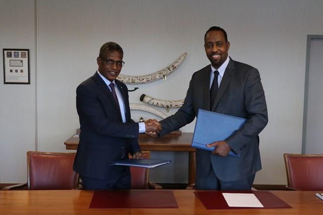 Somalia’s minister for Post, Telecom and Technology, Abdi Ashur Hassan and director general of Universal Postal Union, Ambassador Bishar Hussein, on Tuesday signed amortization plan where Somalia undertakes to pay its debt over a period of ten years starting from 2019.The agreement would not only help lift sanctions imposed on Somalia, but also open doors for Somalia to become an active member in the union after decades of absence.