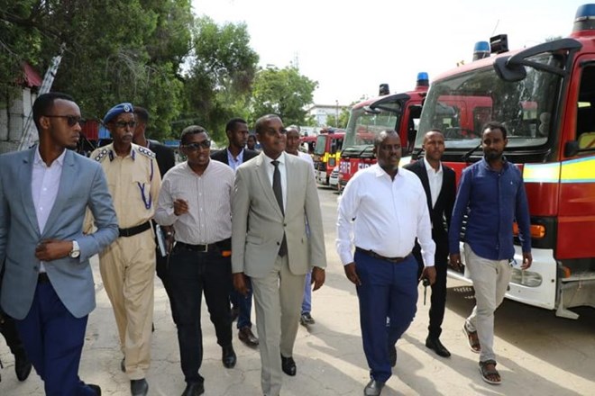 Banaadir Region governor who also doubles as Mogadishu Mayor Omar Mohamud Filish today unveiled fire engines, ambulances, police vehicles and response teams to coordinate emergency response during the heavy rains.