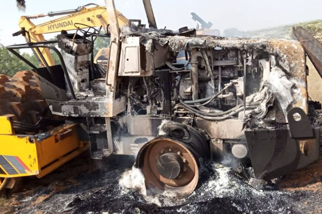 Police and witnesses said the militants raided the site at dawn Sunday and burnt the equipment. No one was injured during the incident on the Mandera-Arabia-Lafey road as the two guards who were on duty escaped.