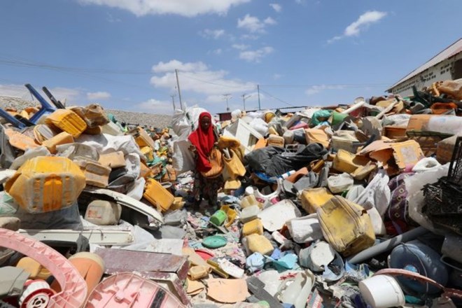 Maryan Abdullahi, a 35-year-old mother displaced by fighting, said she walks more than 10 km (7 miles) a day searching for plastic.