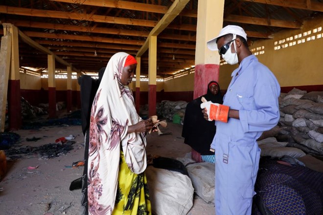A woman receives payment for delivering plastic litter to be recycled into roofing tiles at the Envirogreen recycling plant in Mogadishu, Somalia on January 13, 2019. (REUTERS Photo)