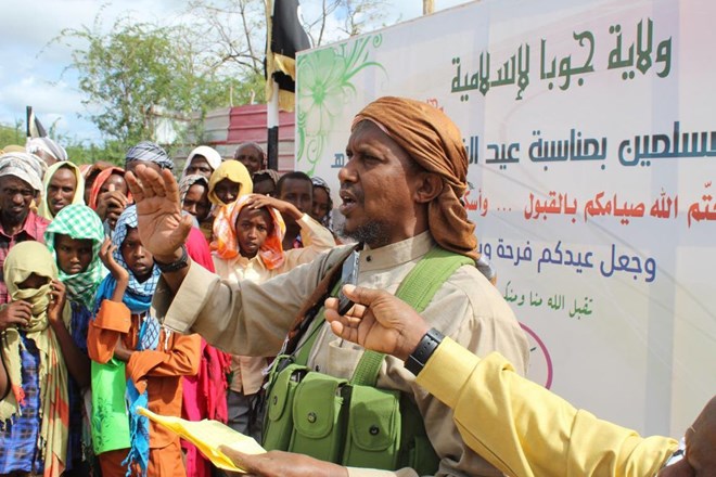 "Fuad Shongole was the only well-known Al-Shabaab official who apparently allowed to be photographed on Tuesday. He led Eid celebrations in the town of Saakow. The former Da’wa Chief likely doesn’t hold a senior position for AS at the moment, but has been operating as a preacher," tweeted VOA journalist Harun Maruf.