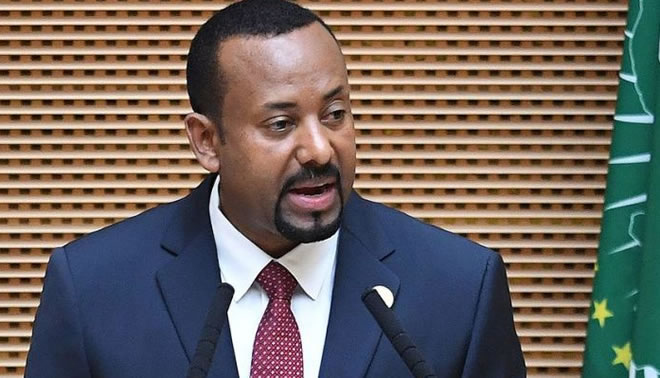 In this file photo taken on November 17, 2018 Ethiopia's Prime Minister Abiy Ahmed delivers a speech during the 11th Extraordinary Session of the Assembly of the African Union in Addis Ababa, Ethiopia. MONIRUL BHUIYAN / AFP/GETTY IMAGES