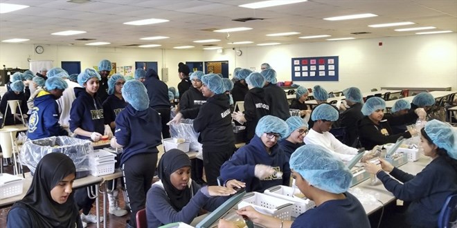 Approximately 120 West Humber Collegiate Institute students packed more than 29,000 emergency meal kits for Syrian refugees on Feb. 27 during a GlobalMedic food packing drive at the Etobicoke high school. - Eric Post photo