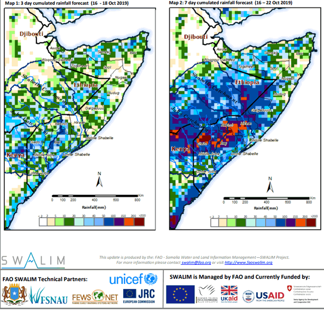 Users are advised that this is a forecast, and at times there may be discrepancies between estimates and actual amounts of rainfall received. Information on the forecast and observed river levels are updated daily on this link: http://frrims.faoswalim.org.