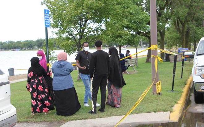 Adan was at the Detroit Lakes City Beach on Sunday holding vigil with family members and a dozen or so other Somali-Americans from Moorhead.