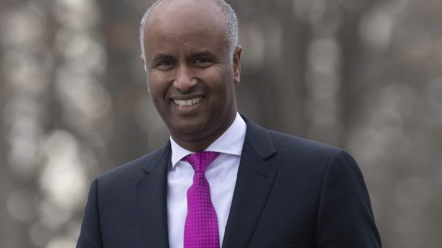 Families, Children and Social Development Minister Ahmed Hussen smiles as he makes his way to Rideau Hal in Ottawa, Wednesday November 20, 2019. (The Canadian Press/Adrian Wyld)