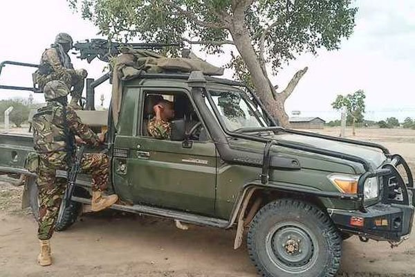 Kenya Defence Forces officers patrol the border village of Kotile on the Lamu Garissa and Somalia border. Al-Shabaab attacks in the country have increased this year. PHOTO | FILE | NATION MEDIA GROUP