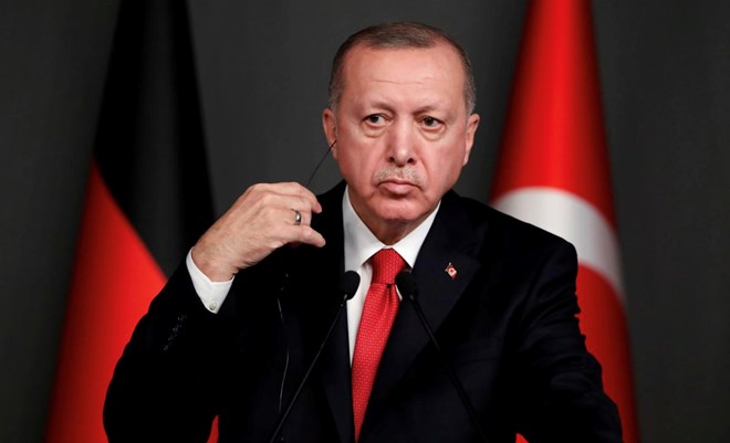 Turkish President Tayyip Erdogan attends a joint news conference with German Chancellor Angela Merkel in Istanbul, Turkey, January 24, 2020. REUTERS/Umit Bektas/File Photo