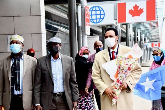 Hassan Dahir Dimbil (Tan jacket, flowers) has been appointed Somalia's ambassador to Canada