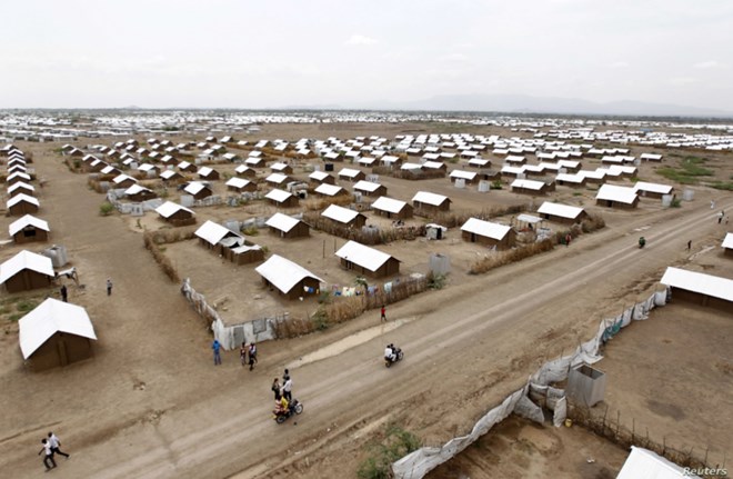 FILE - An aerial view shows houses at the Kakuma refugee camp in Turkana District, northwest of Kenya's capital Nairobi, June 20, 2015.