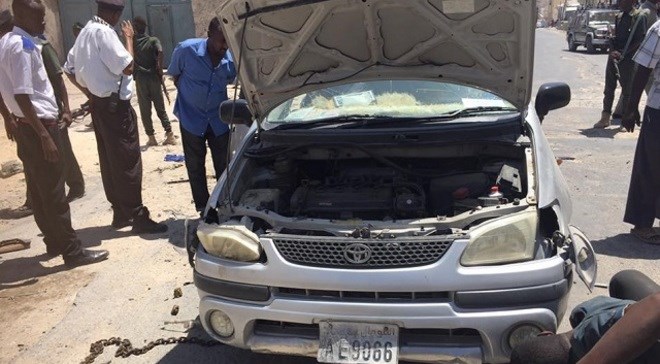 Sources said the private car carrying a police officer in Hilwaa district drove into a land mine suspected to have been planted on the road.