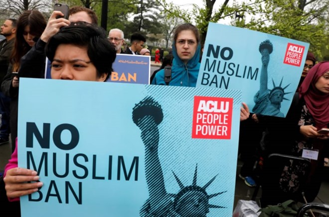 President Donald Trump's travel ban targeting people from Muslim-majority countries drew protests [File: Yuri Gripas/Reuters]