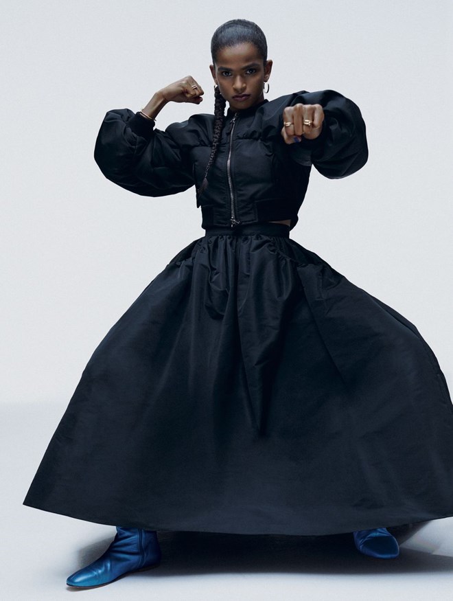 It’s no surprise that Ali’s job is to fight – whether that’s in the ring, for social justice or for wider representation in fashion. It’s in her DNA. ‘I feel like the concept has come from my mum,’ she smiles. ‘She’s the ultimate fighter; a champion. Everything my mum has been through… Obviously she’s a very sassy woman, that comes with being African, but she always comes out smiling. She’s never moaned, she’s never complained that she’s had a hard life. She just gets on with it. That is the mindset of a true warrior.’