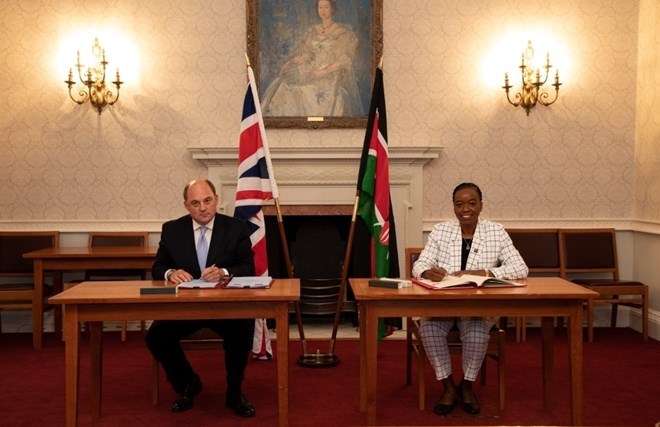 The Cabinet Secretary for Defence, Dr Monica Juma, and her UK counterpart, Defence Secretary Ben Wallace, signed the new DCA in Last night (27 July) at the Ministry of Defence offices in London. CREDIT: Foreign, Commonwealth & Development Office and The Rt Hon Ben Wallace MP