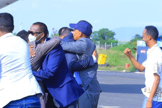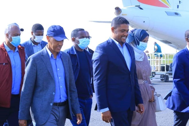 Shimelis Abdisa's delegation landed at the Garaad Wiil-Waal International Airport in Jigjiga, where Somali regional president, Mustafa Cagjar, welcomed him.