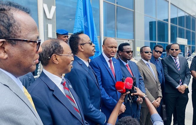 MOGADISHU (HOL)- The Somali delegation that led the maritime case legal team headed by Deputy Prime Minister Mahdi Guled today arrived following a win against Kenya.