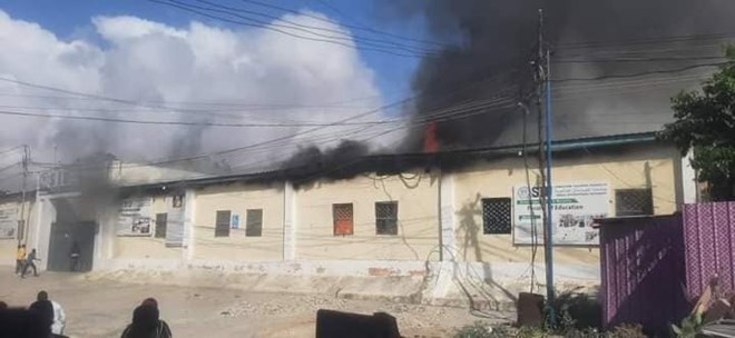 MOGADISHU (HOL)- A section of Somali International University was this morning engulfed in fire following a suspected electric fault.