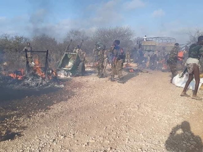 Al Shabab set fire to donkey cats transporting food in Wajid Town, South West State.
