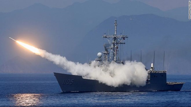 A missile is fired from ROCS Chi Kuang as part of Taiwan's annual "Han Kuang" exercises on July 26.