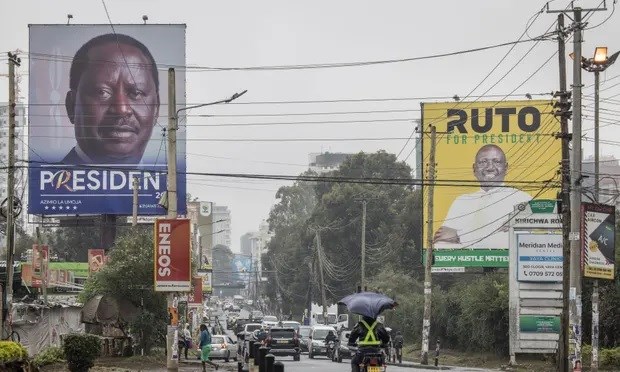 Election posters for Raila Odinga and William Ruto in Nairobi. Kenya goes to the polls on Tuesday. Photograph: Marco Longari/AFP/Getty Images