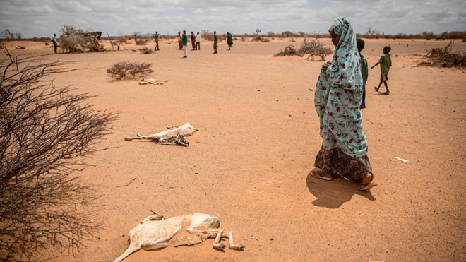 The drought has had a devastating effect on crop yields and on livestock populations. In Somalia, vegetable and grain production is expected to drop by about 80% this year.
