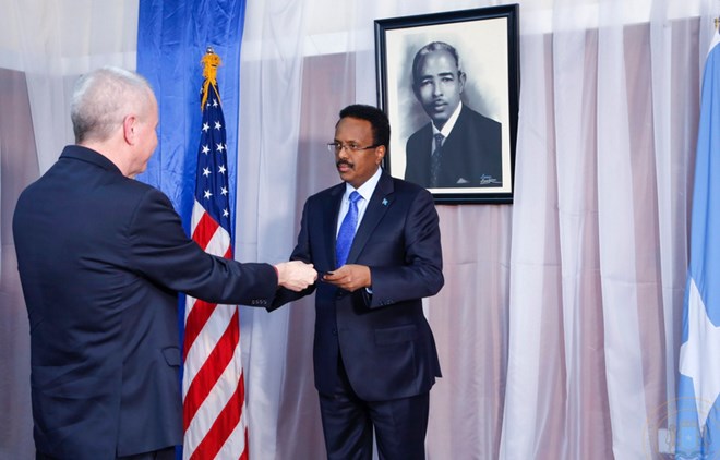 In a ceremony at Villa Somalia, the presidential palace in the capital Mogadishu, the new envoy formally presented his credentials, then shared a message from the President of the United States Joe Biden with the Somali leader.