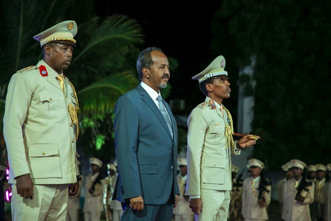 Mogadishu (HOL) - Somali President Hassan Sheikh Mohamud and Prime Minister Hamza Abdi Barre attended a celebration ceremony of Somalia's 62nd anniversary of independence in Mogadishu last night.