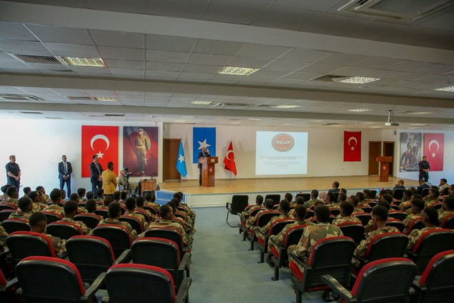 Mogadishu (HOL) - Somali President Hassan Sheikh Mohamud visited the commando training center in Isparta, Turkey, on Tuesday, where Somali soldiers received training under an army cooperation pact between the two countries.