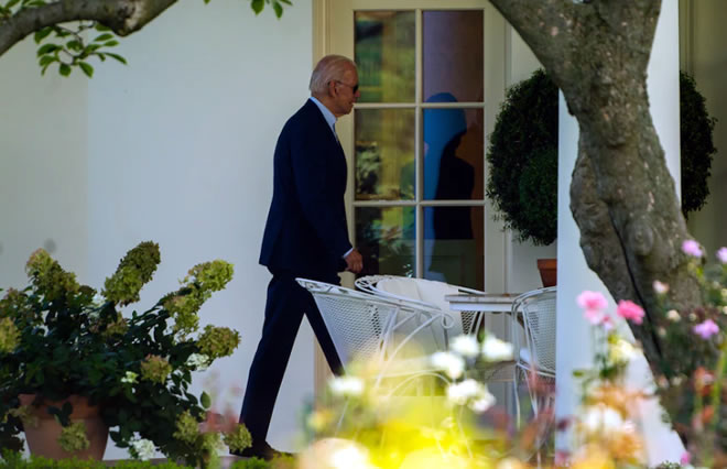 President Biden walks to the Oval Office of the White House on Wednesday. (Demetrius Freeman/The Washington Post)