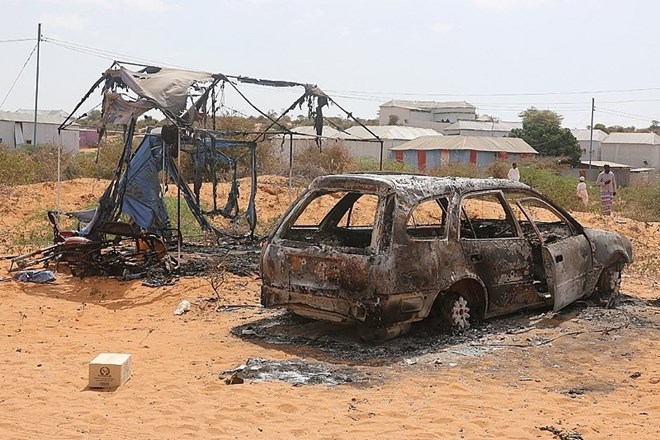 A view from one of the scenes after at least five people were killed and more than 16 wounded in a series of attacks targeting security forces across Mogadishu suburbs and for which Al-Shabaab claims responsibility.16 February 2022. Abukar Mohamed Muhidiin / Anadolu Agency via AFP