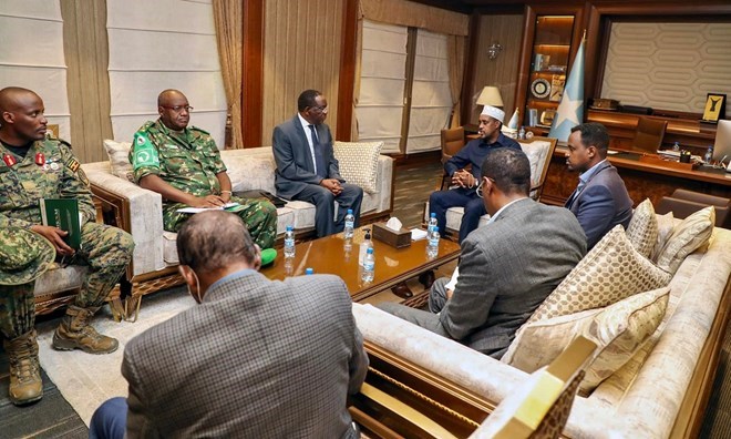 Mogadishu (HOL) - Prime Minister Mohamed Hussein met with the Special Representative of the Chairperson of the African Union Commission (SRCC) for Somalia, Ambassador Francisco Madiera, on Thursday to discuss AMISOM's role in electoral security.