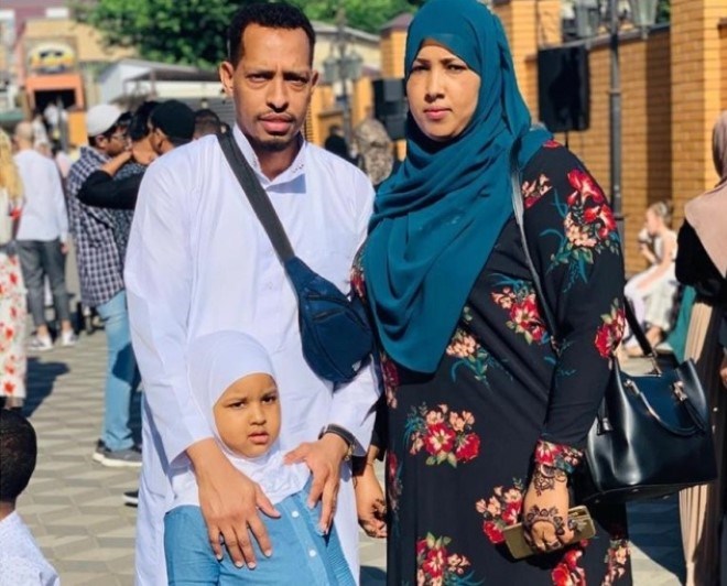 Mohamud Abdi, a Somali refugee in Ukraine who has since moved to Germany, pictured with wife Zamzam and seven-year-old daughter Ruweyda [Courtesy: Mohamud Abdi]
