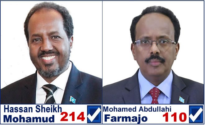 In the final round, Mohamud increased his vote take by an impressive 104 votes, from 110 to 214. Farmajo could only secure 27 of the 134 available votes left behind by Deni and Khayre.