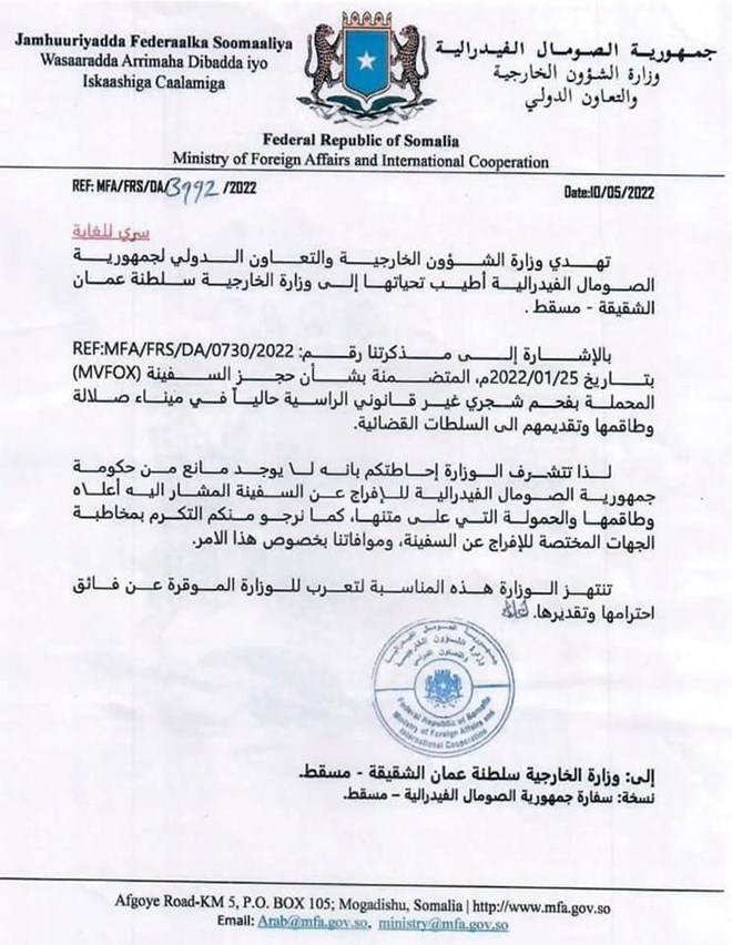 Mogadishu (HOL) - Somali Prime Minister Mohamed Hussein Roble suspended Foreign Affairs Minister Abdisaid Muse on Tuesday. Prime Minister Roble also nullified Muse’s letter from the Ministry of Foreign Affairs that authorized a ship carrying illegal charcoal exported from Somalia and docked off the coast of Oman.