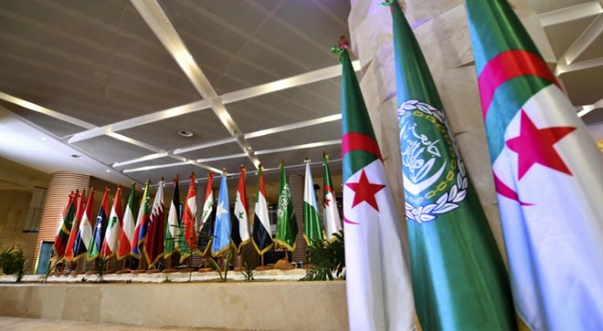 Flags of Arab League nations displayed at the convention center slated to host the Heads of State summit, in Algeria's capital Algiers Fethi Belaid AFP