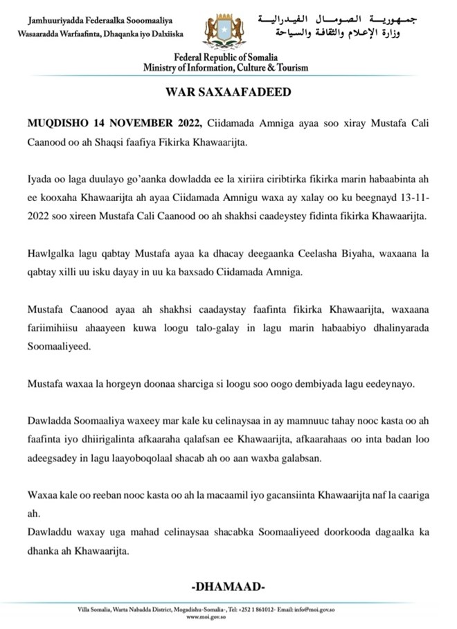 The religious affairs ministry called on Somali citizens to refer to the militant group as 'Khawarij' - a derogatory term meaning "those who walked out" or "those who left," which is reserved for Islamic deviants.
